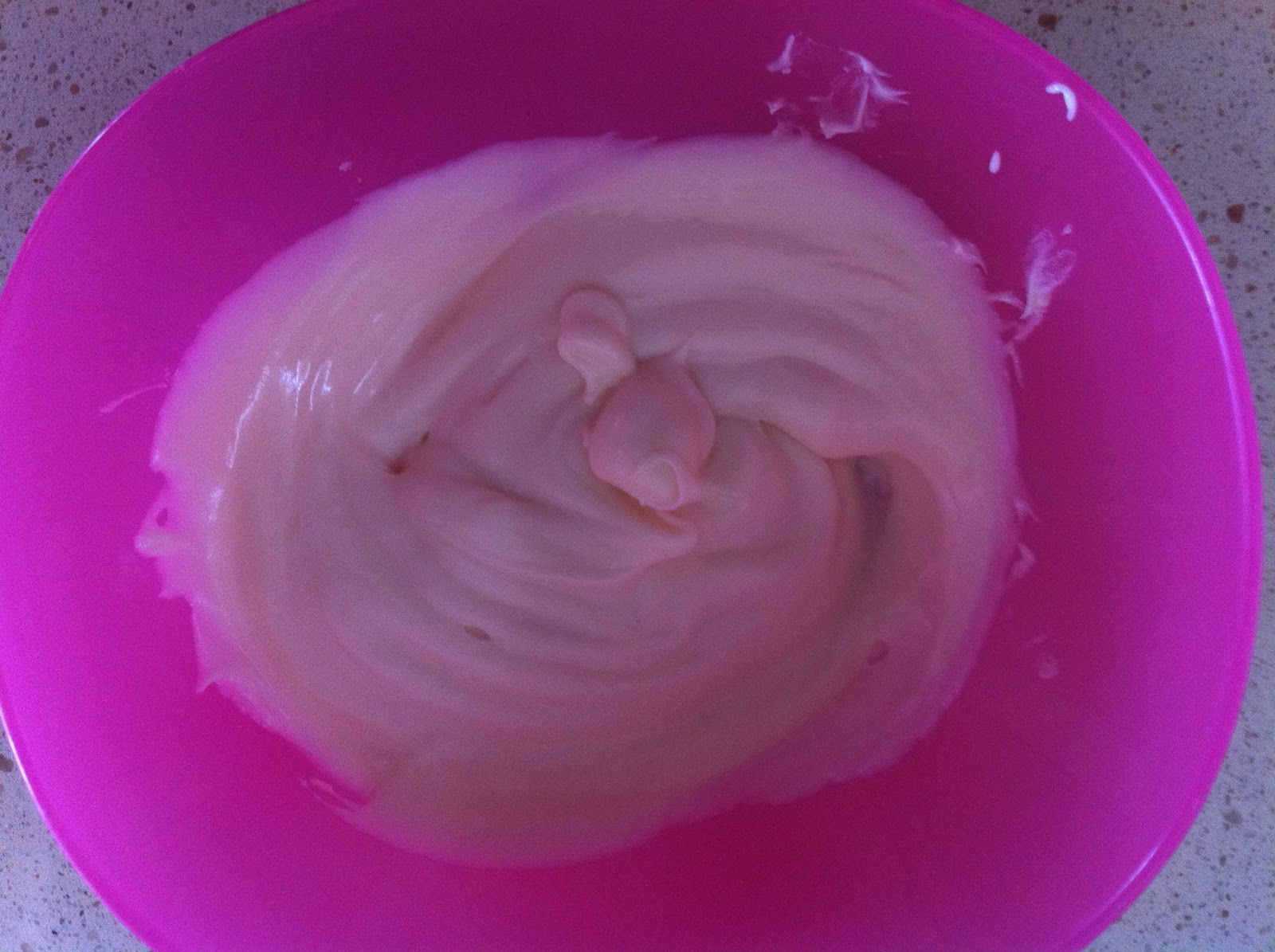Derretimos el chocolate blanco...primero en el micro y después al baño María.