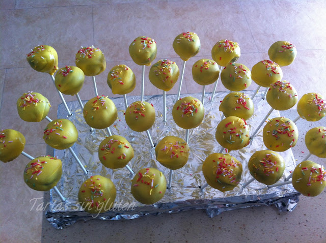 Mis Cakes Pops están adaptados al "Mundo sin gluten", pero cambiando el bizcocho podrá hacerlos quien quiera , recordad que podéis aprovechar cualquier bizcocho duro, magdalenas....
