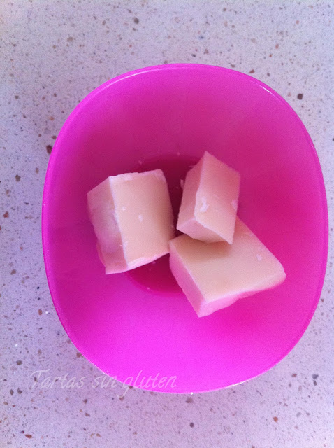 Ahora cogemos un poco de chocolate blanco no mucho !!! , con 5 onzas tendremos bastantes