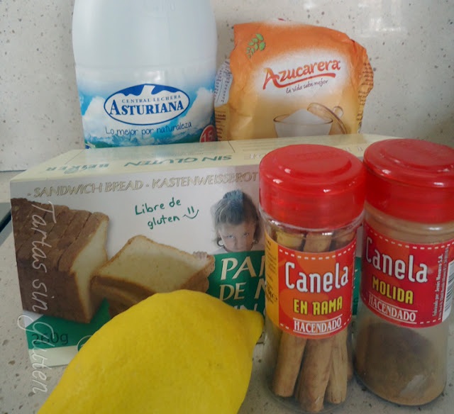 Lo normal es usar pan duro ... bueno en nuestro caso como ningún pan que compremos "sin gluten" esta muy blando que digamos .... he usado el pan de Molde de Beiker ( Mercadona ).. es un pan bastante durito y que además cuando lo empapas en la leche no se desmorona.