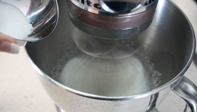 Montamos las claras con el azúcar normal, a punto de nieve....muy duritas eh!