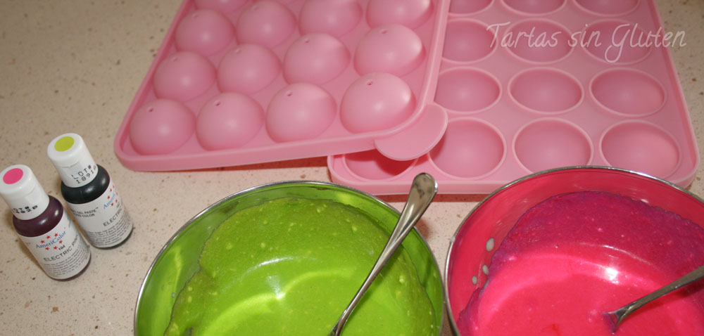 Y para decorarla con eso lunarillos rosas y verdes...he usado un molde de silicona de cakepop......