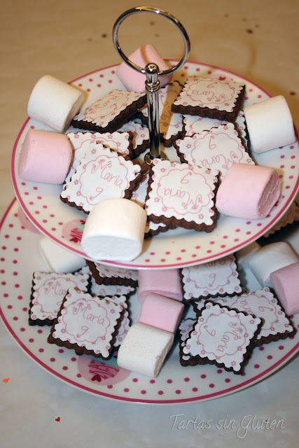 Para esta ocasión me decidí a usar unas obleas de azúcar , sin gluten claro , podéis conseguirlas en Fotopastel ... tienen muchísimas plantillas tanto de tartas , cupcakes , y galletas ...y son ideales !!!!
