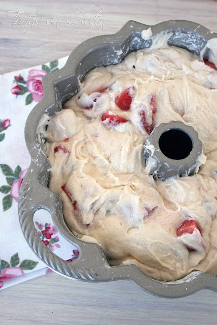 Horneamos unos 40 minutos, a 180ªC. Una vez pasado el tiempo sacamos del horno y como el cualquier Bundt dejamos reposar unos 10 minutos antes de desmoldar.