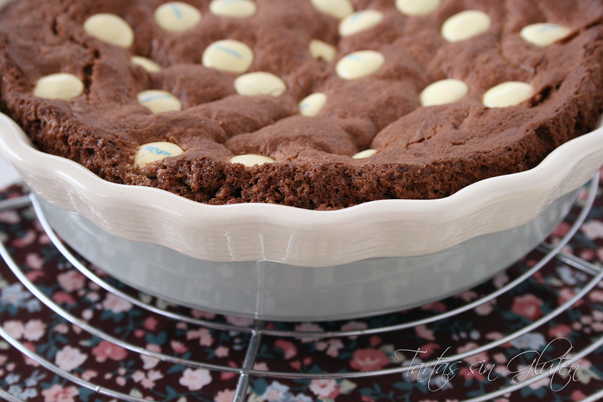 Colocamos la masa en un molde engrasado, y decoramos con el resto de los Lacasitos.