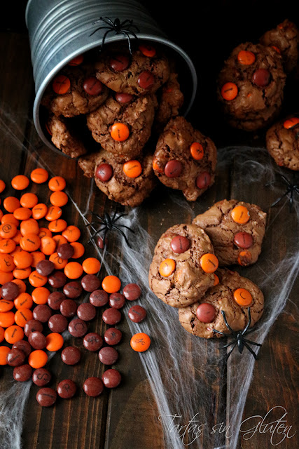 Ya estamos cerca de Halloween!! y cómo  sabéis los niños se vuelven locos con esta fiesta, deseando disfrazarse, hacer juegos y meriendas terroríficas! Hoy os dejo una recetita de galletas con Lacasitos, los colores naranjas y marrón muy propios para estas fiestas. Son unas galletas sencillas y fáciles de hacer y decorarán vuestras mesas de halloween a la perfección.No siempre hay que complicarse con las elaboraciones, unas galletas ricas con colores típicos de halloween como los que podemos conseguir con Lacasitos y una buena decoración en la mesa ( arañas, brujas y ratones ...) hará que vuestras creaciones sean dulcemente terroríficas!!!