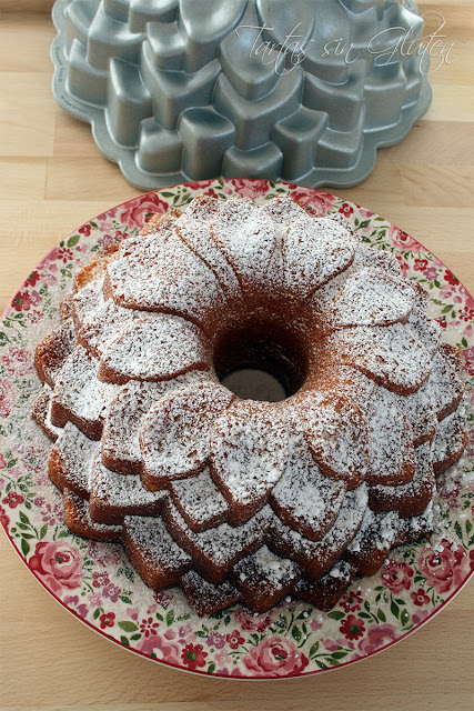 La receta la he sacado de los típicos Bundt Cake , esos bizcochos tipico del America del Norte , tan de moda , que se elaboran con rectas especiales y cuyo secreto esta en usar unos moldes Bundt....que son preciosos !!!! caros pero preciosos !!! ... os dejo aquí una web donde podéis ver todos los moldes nordicware .